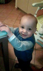 Michele fa scoperte ogni giorno.. Oramai non gattona più,cammina esclusivamente e bisogna avere mille occhi! Sale continuamente sul divano ma non sa scendere, o meglio, si butta! Per cui,per evitare che si faccia male,abbiamo messo per terra dei materassini..mamme,sembriamo accampati!!in più ho perenne disordine perché mi mette in giro qualunque cosa,dalle pentole ai suoi giochi..ieri mi sono ritrovata nel congelatore un pacco di salviette!!mi faccio di quelle risate..lo lascio fare,fa parte del gioco!